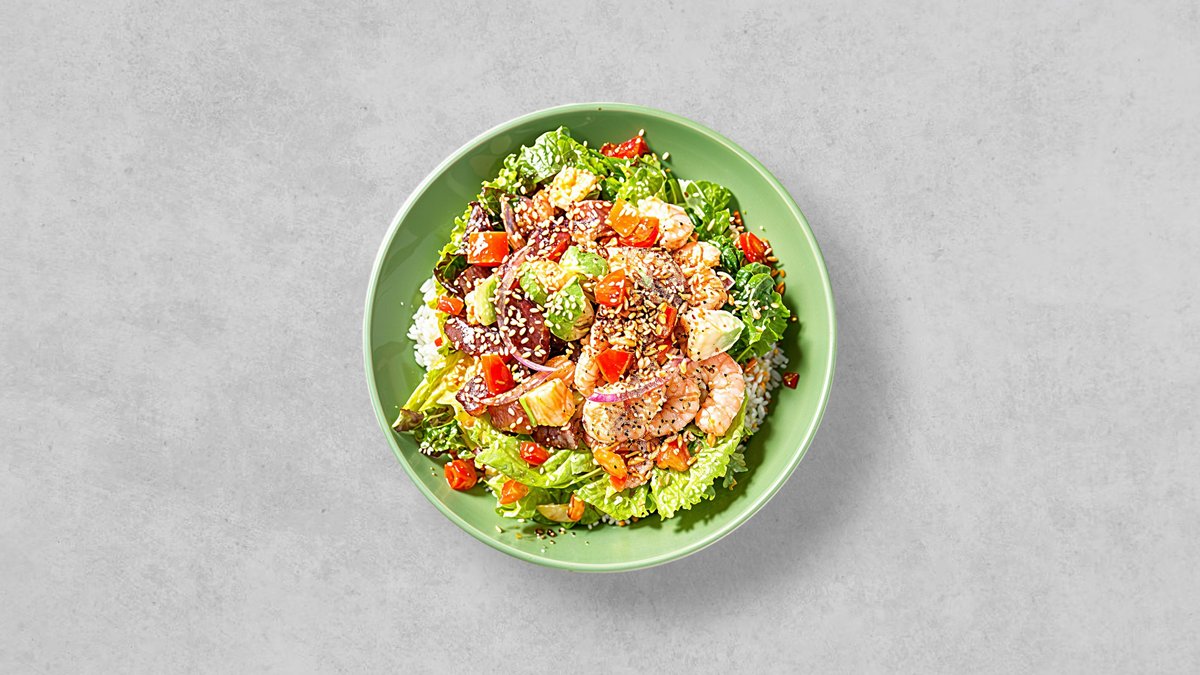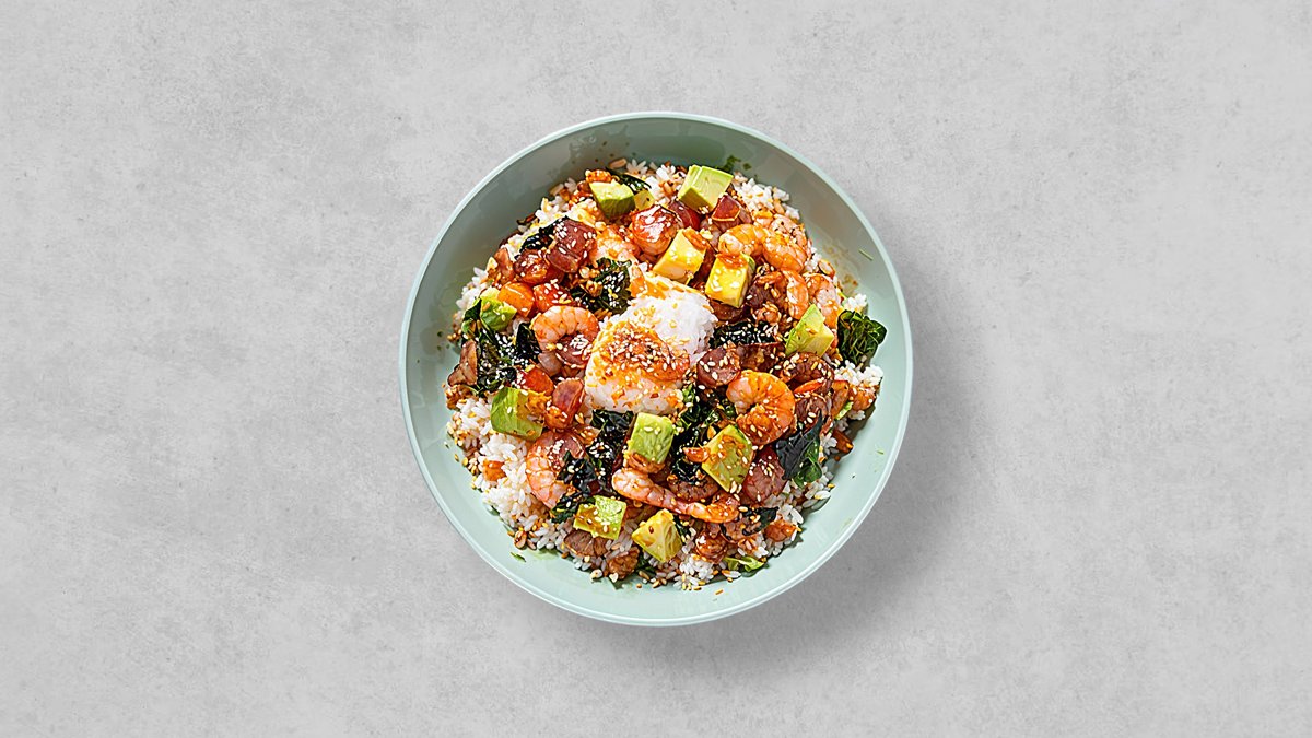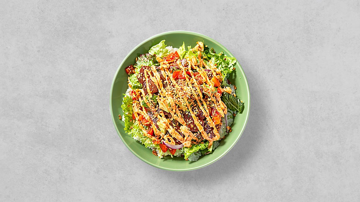 辛味とクリーミーさが絶妙に融合したスパイシーチリマヨソースがかかったポキ丼。ピリッとした辛さとまろやかな味わいが楽しめる一品です。