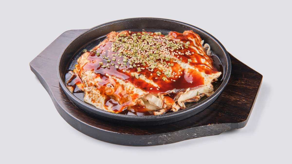 何層にも重ねたキャベツの甘みと、こだわりのソバが絶妙なバランスを奏でるお好み焼き。本場の一皿をご堪能ください🥢