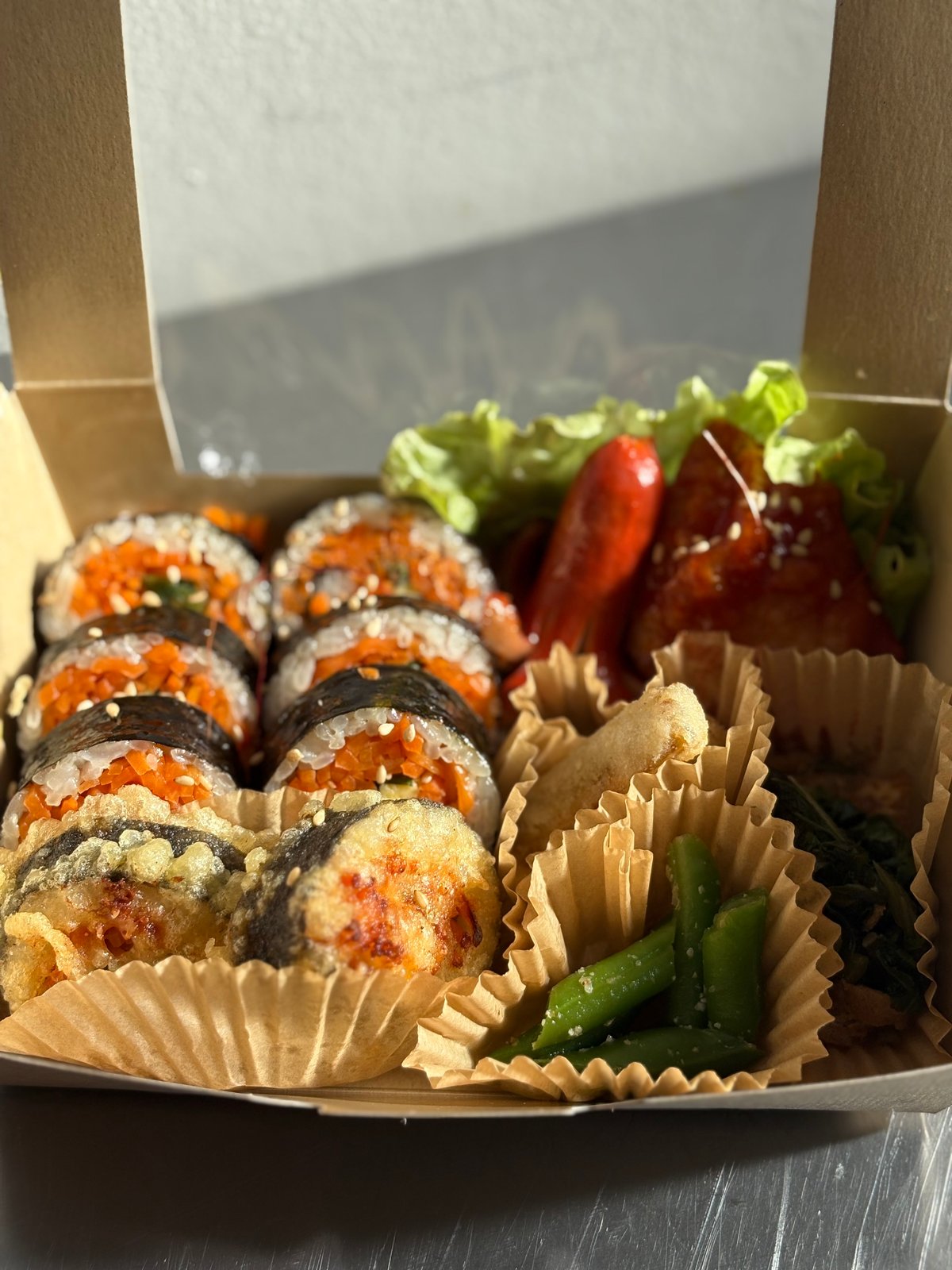 彩り野菜がぎっしり詰まった、具だくさんのキンパが自慢です。一本一本、心を込めて丁寧に手作りしています🇰🇷