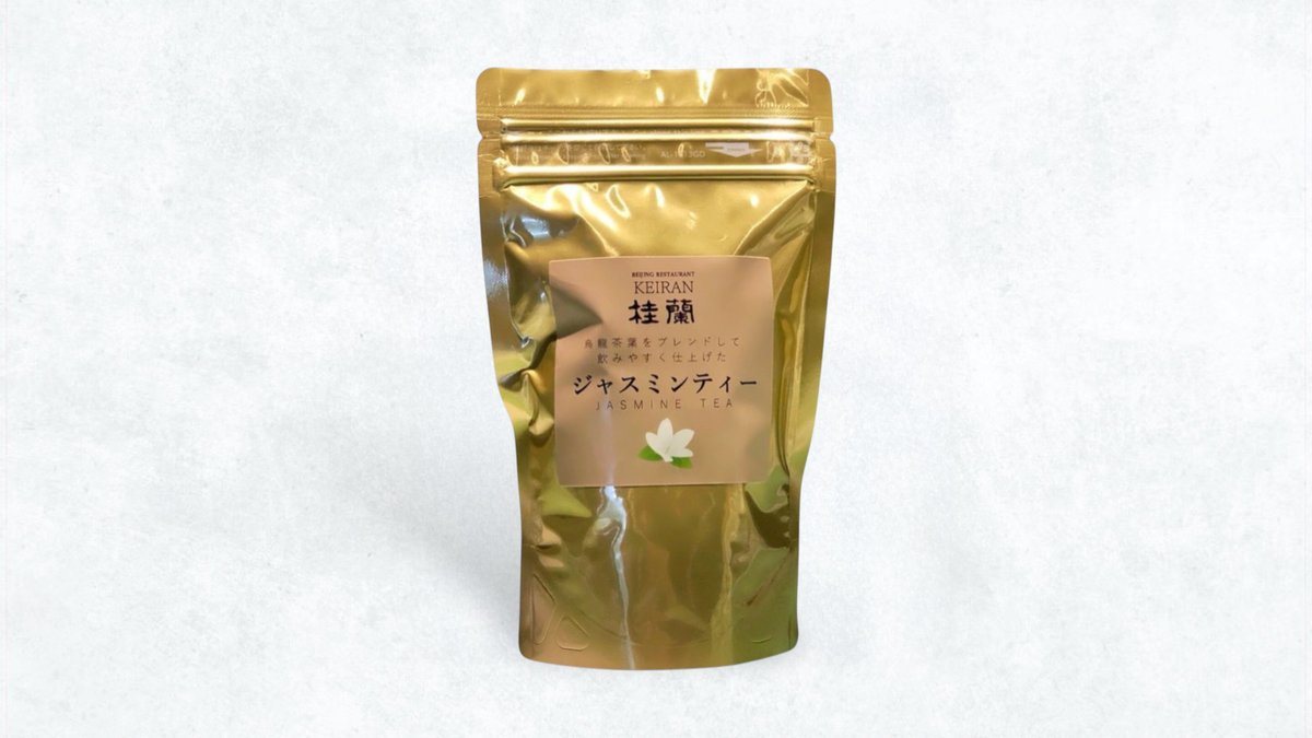 店舗ではお食事して頂いた後にお出ししているオリジナルブレンドのジャスミンティー 二番茶まで楽しんで頂けます。濃いめに入れてアイスで飲んで頂いても美味しいですよ(50g)