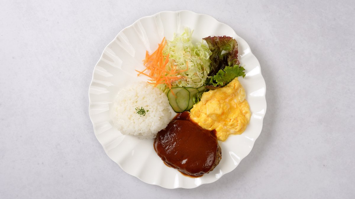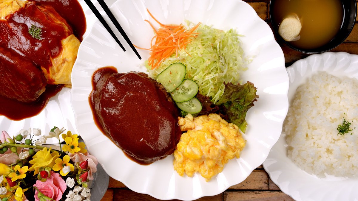 柔らかくて美味しい手作りハンバーグと、とろとろ卵のオムライスが人気の喫茶店ランチ。心温まる、昔ながらの懐かしい味わいをお楽しみください🍴