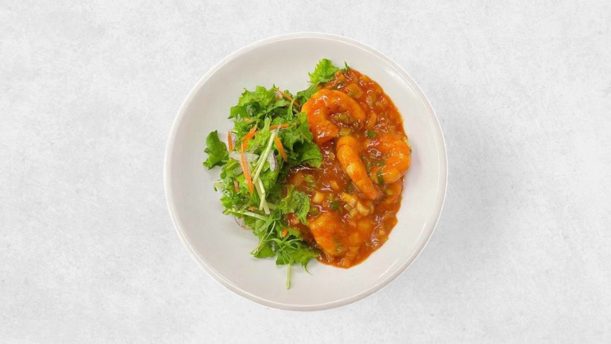 プリプリの海老を、豆板醤などの香辛料とケチャップを効かせた甘辛いチリソースで炒めた人気の中華料理です。