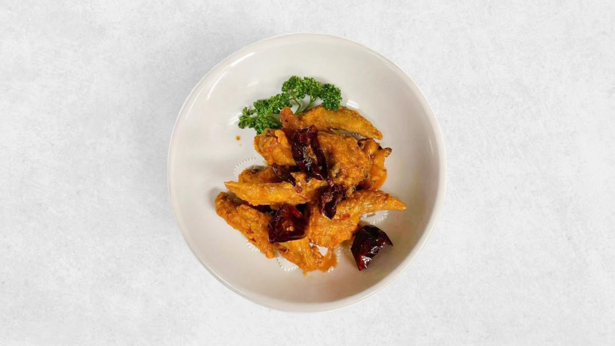 鶏の手羽先をカリッと揚げ、特製のピリ辛なタレで味付けした一品です。香ばしい皮とピリッとした刺激が食欲をそそります。