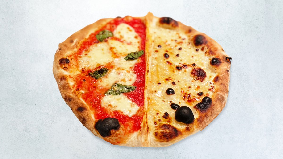 マルゲリータピザとハチミツゴルゴンゾーラピザのハーフ&ハーフ