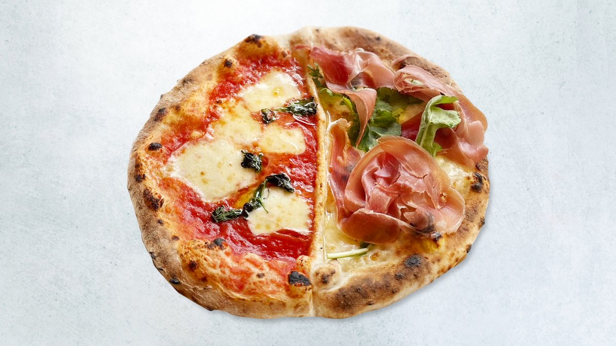 マルゲリータピザと生ハムピザのハーフ&ハーフピザ