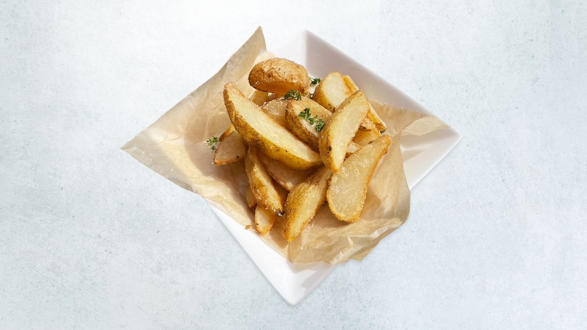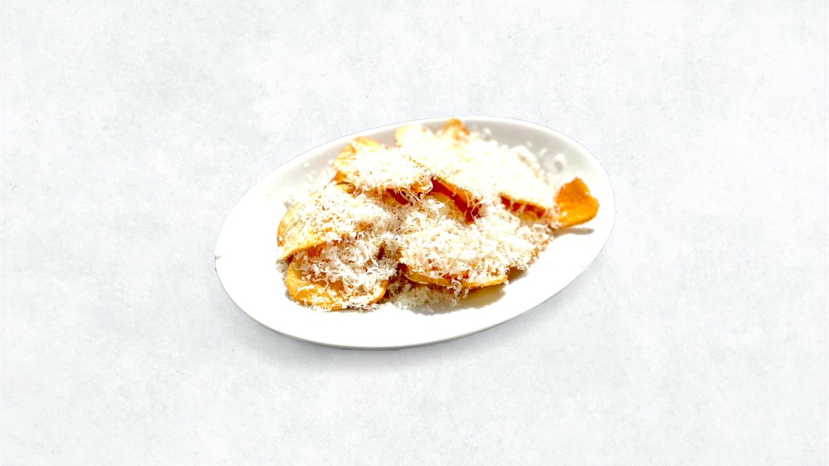 皮付きフライドポテトにトリュフのパウダーがからめてあります。