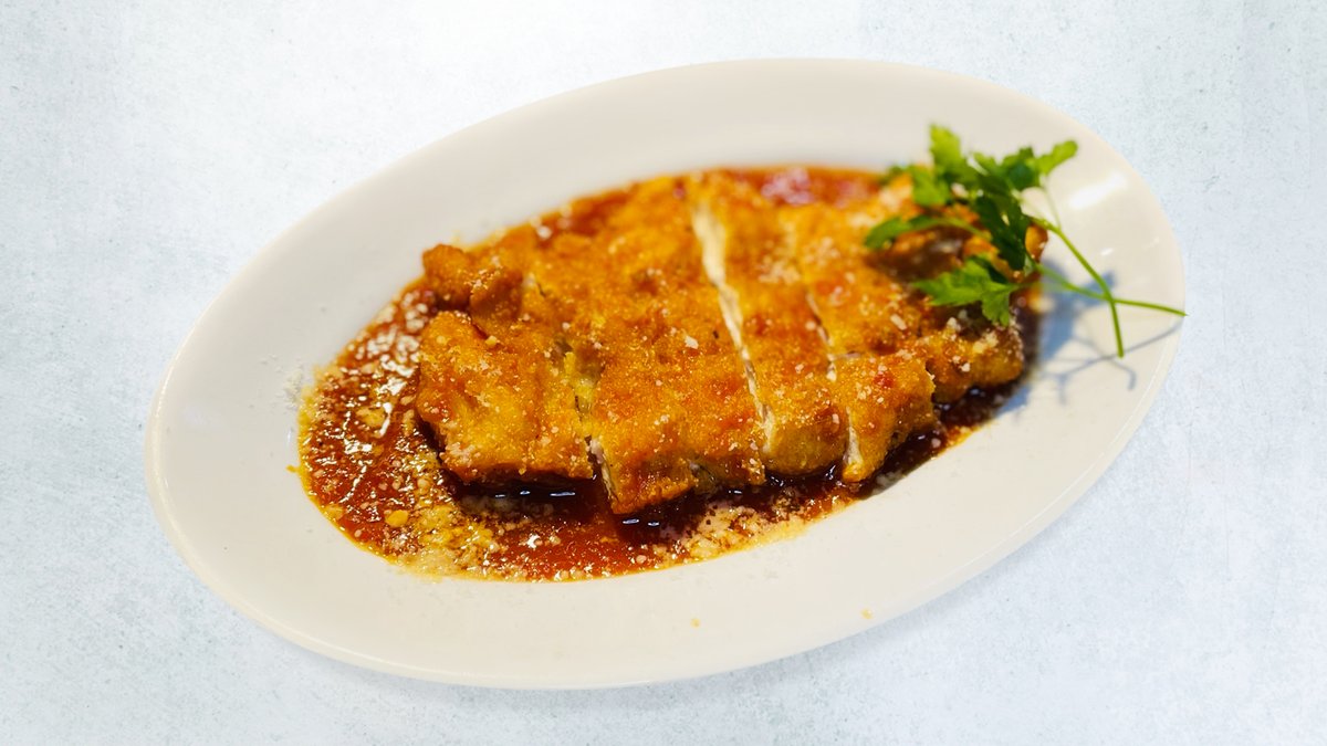 衣にパルメザンチーズを混ぜ込んだミラノ風のチキンカツ