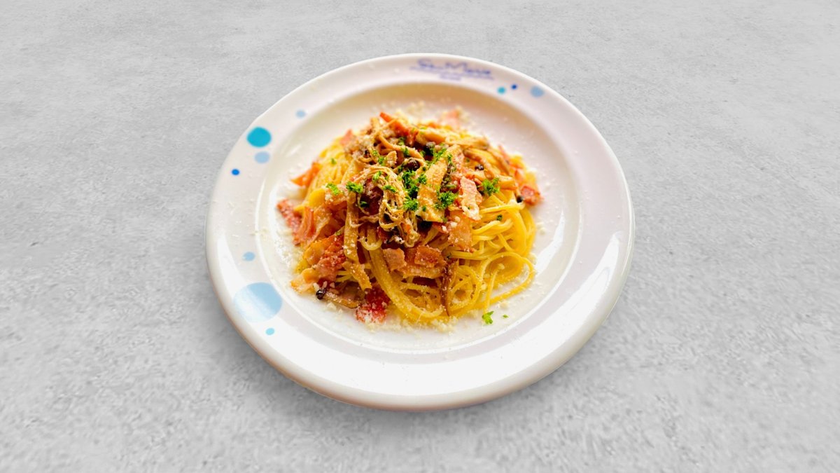イタリア産カラスミとイカのペペロンチーノスパゲッティ