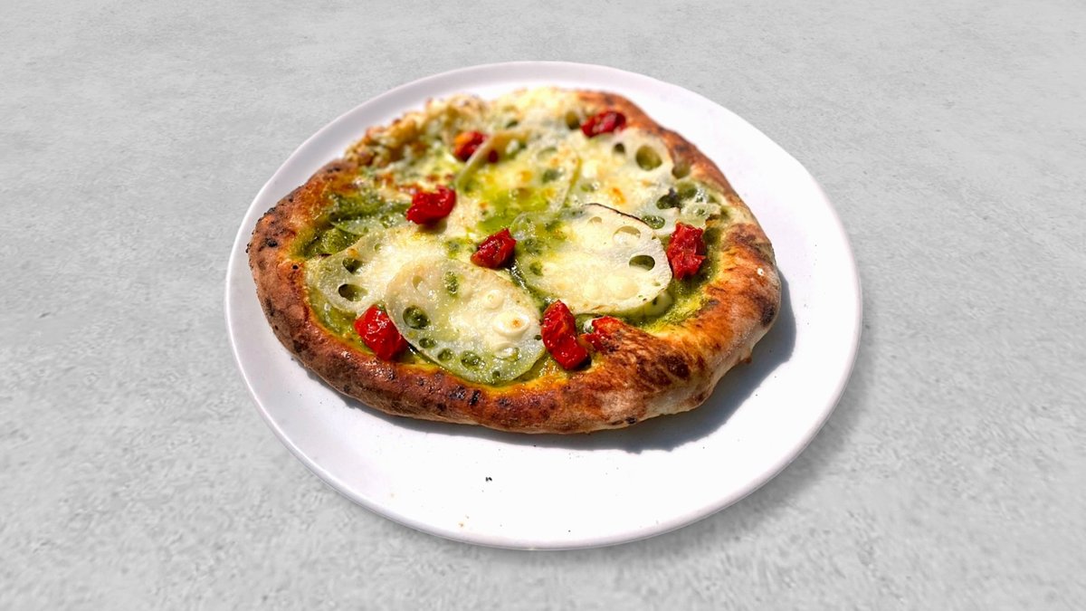 岩国レンコン・モッツァレラ・ドライトマトのバジルソース ピザ