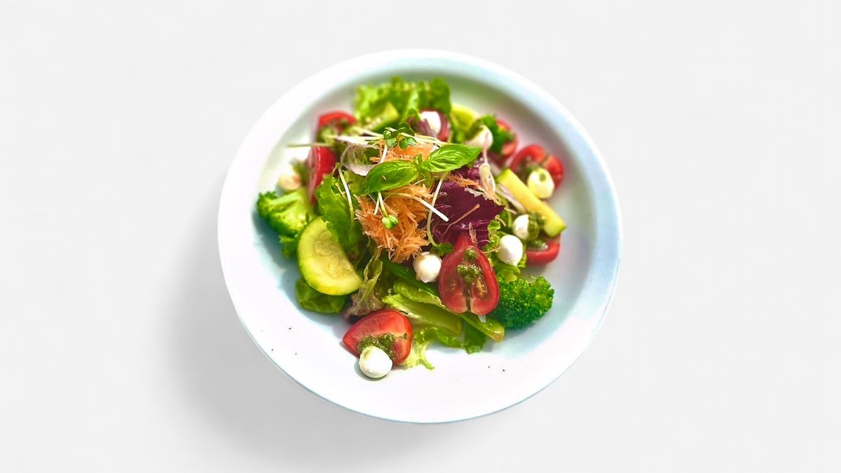 「蒸し鶏、紀州梅、青じそ、タラコの和風スパゲッティ」+サイドディッシュ1品 ※お好きなサイドメニューをお選びください。