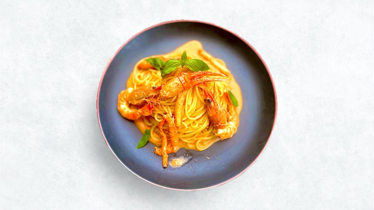 紅ズワイガニと海老 トマトクリーム スパゲッティ