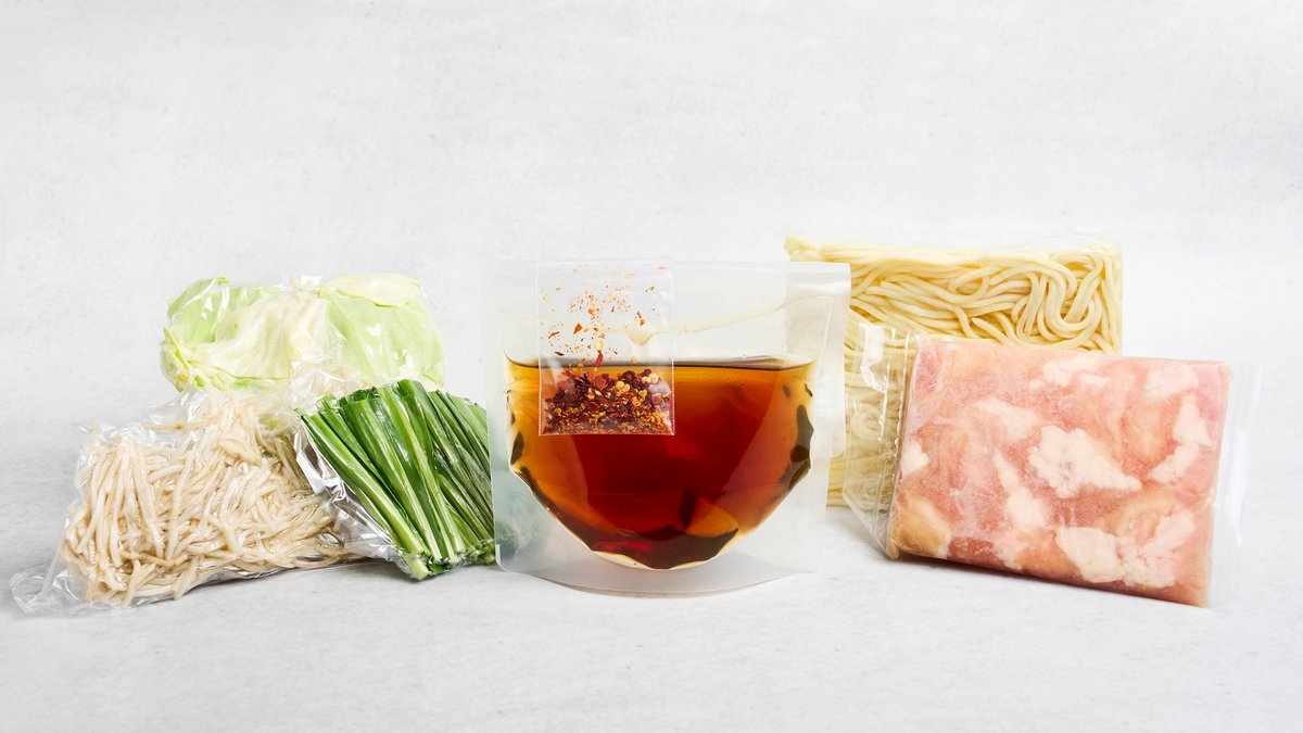 ご自宅で調理してお召し上がりください。 ※完成形のお写真はイメージです。お豆腐はセットに含まれませんので、ご了承ください。 セット内容:味噌ベーススープ・モツ(約100g)・野菜セット(キャベツ・ごぼう・ニラ)・ちゃんぽん麺