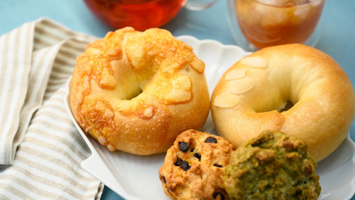 サクサクしっとりスコーンと、国産小麦を使用したむぎゅっともちもちベーグルを提供しています🌟軽食や小腹が空いた時にもピッタリなメニューです。