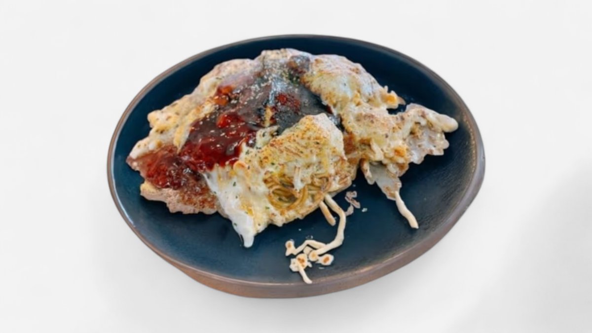 ささ家特製カレーチーズのお好み焼きです😊 スパイシーなカレー×濃厚チーズの最強コンビ。 一度食べたら忘れられない、クセになる美味しさ。