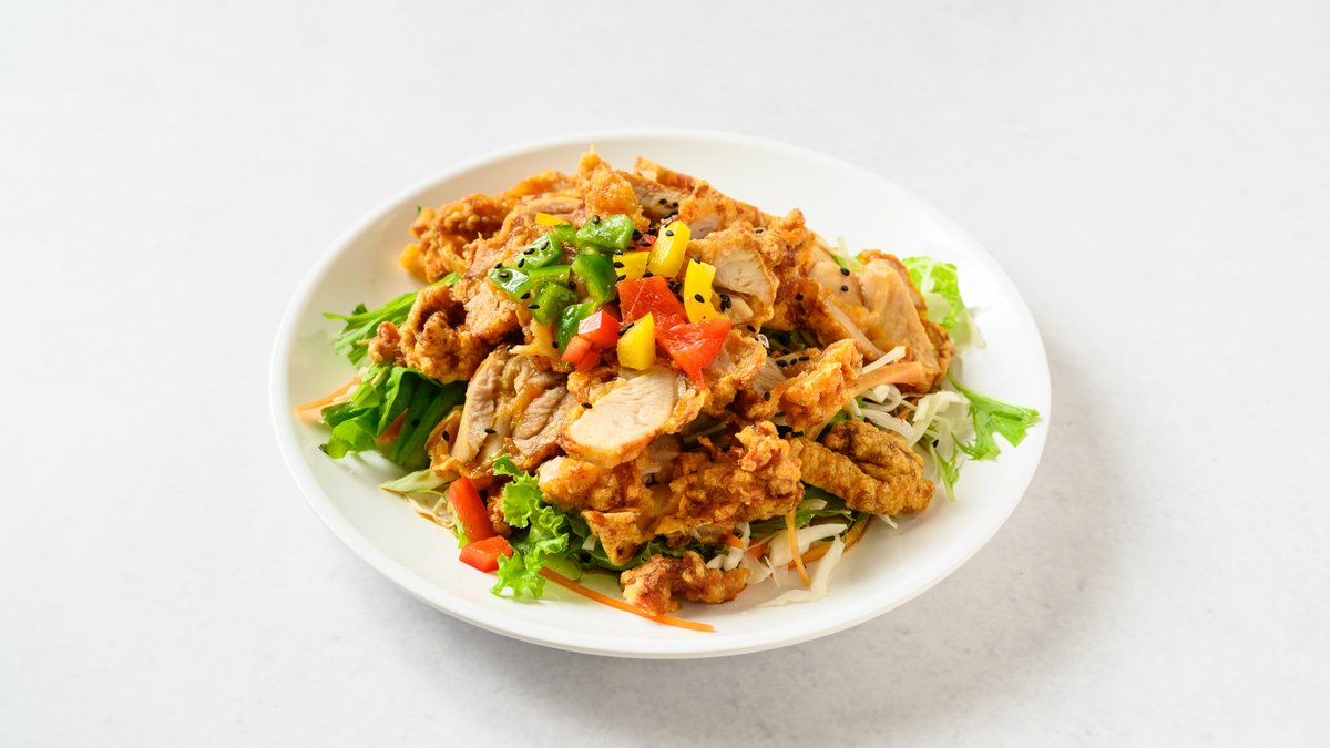 揚げた鶏肉に、ネギと醤油ベースのタレをかけた、さっぱりと食べられる一品です。