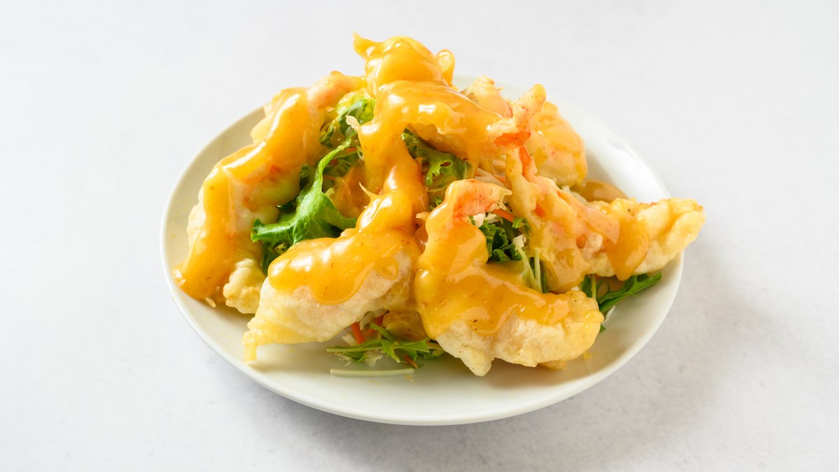 プリプリの海老を特製マヨネーズソースで和えた中華料理です。海老の甘みとマヨネーズのコクが楽しめます。