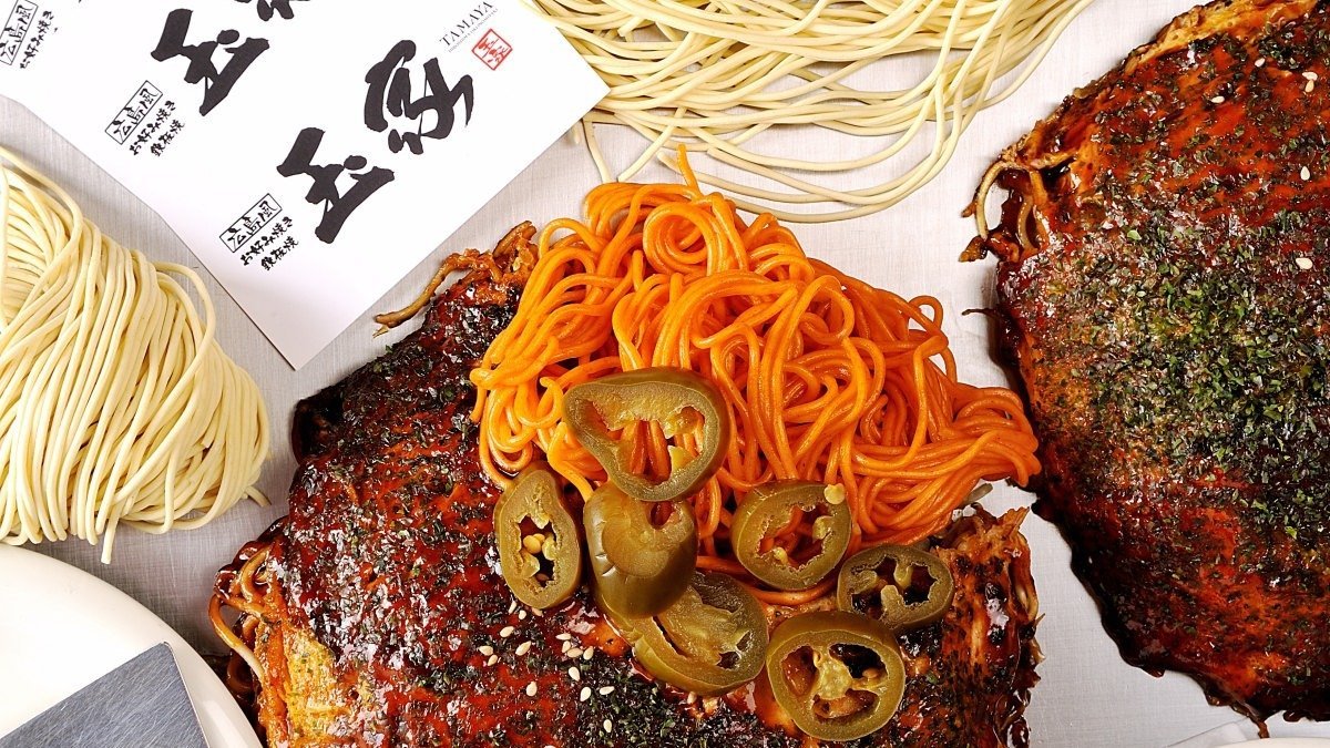 野菜と麺も美味しいお好み焼きです!オプションで具材を大盛に変更、トッピングを追加できます。