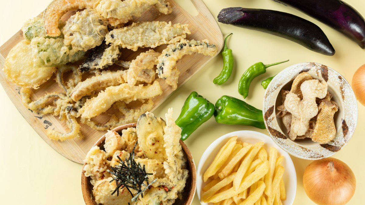 当店自慢のホルモン天ぷらと野菜の天ぷらの盛り合わせです。(ホルモン8品、野菜5品)