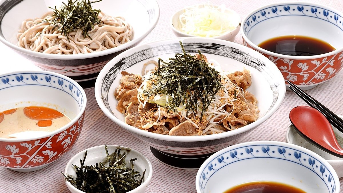 蕎麦つゆに特製のラー油を合わせた、ピリ辛で濃厚なつけ汁がやみつきになるラー油蕎麦。こだわりのコシのある蕎麦と、たっぷりの豚バラ肉が相性抜群です🥢