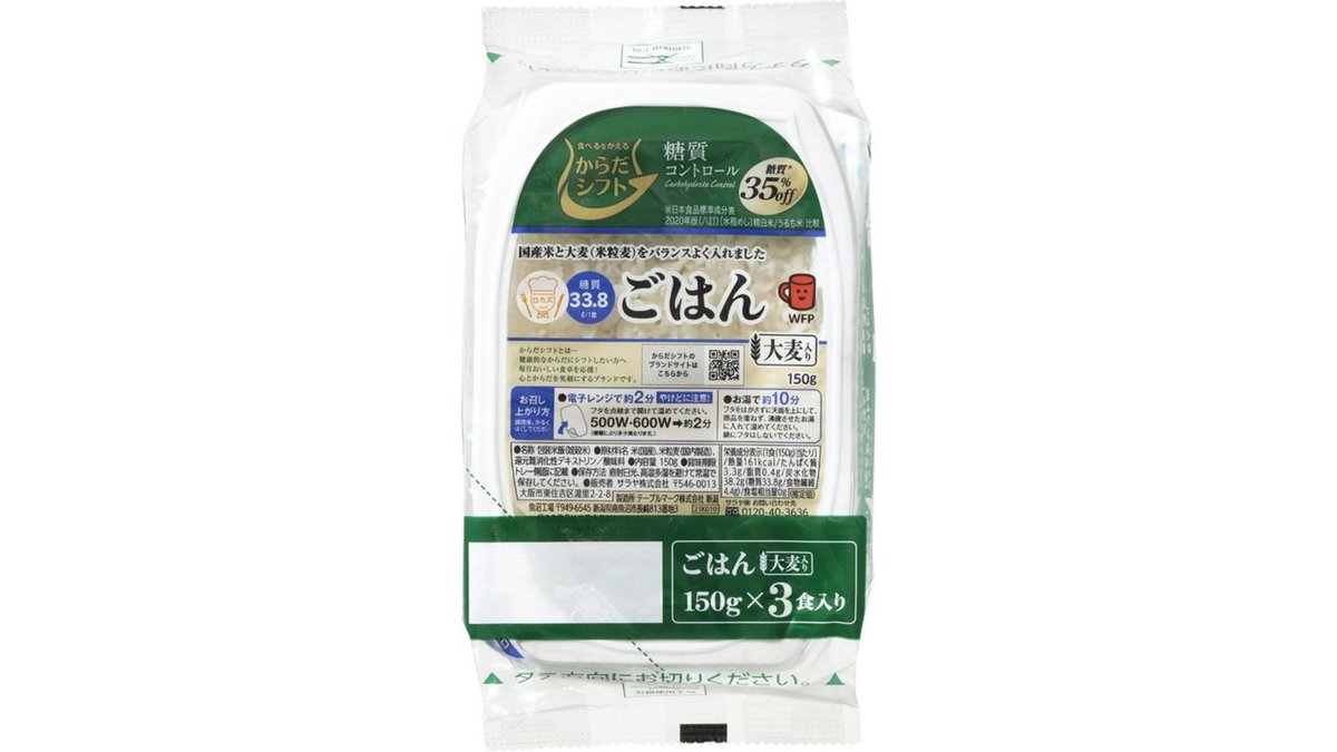 からだシフト 糖質コントロール ごはん 大麦入り 150g×3入り