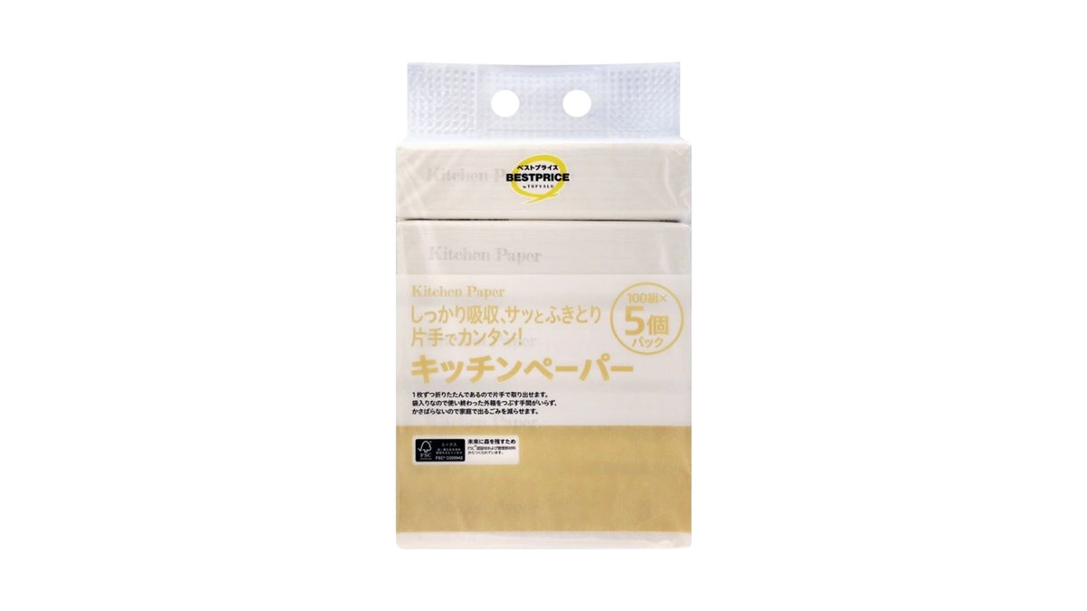 しっかり吸収、片手でカンタンキッチンペーパー 100組×5 トップバリュ ベストプライス Top Valu Best Price