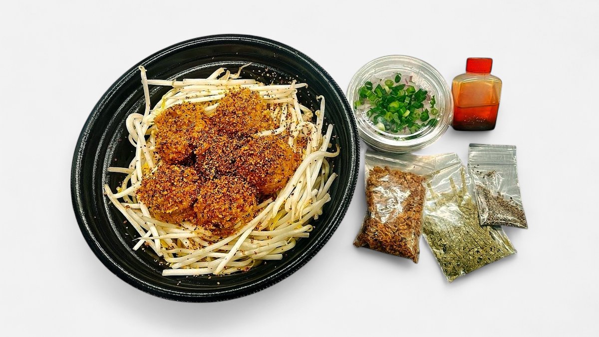 こってりの肉みそだれに、サクサクのフライドオニオンをもちもち中太麺によ~く絡めて食べる美味しいまぜそばだよ。にくみそだれは湯せんして、麺は茹でるだけ。作り方もついてるよ。トッピングはきざみ野菜ともやし (茹でてね)がおすすめです。