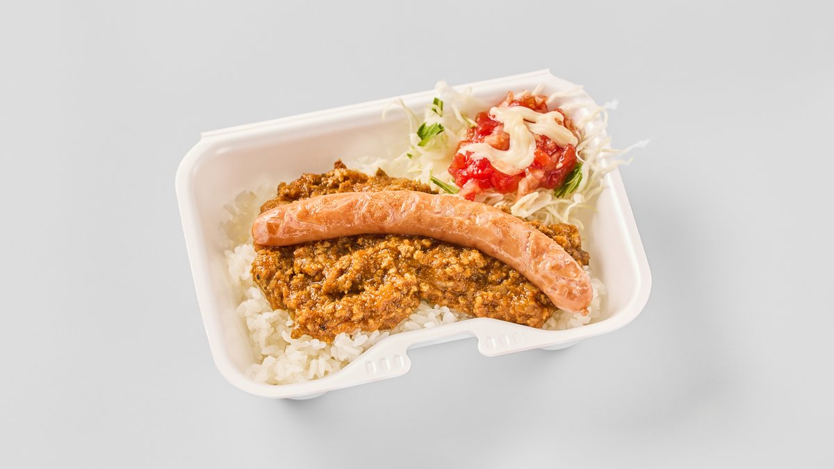 豚ひき肉と玉ねぎとにんじんを煮込んだカレーにウィンナーが付きます。