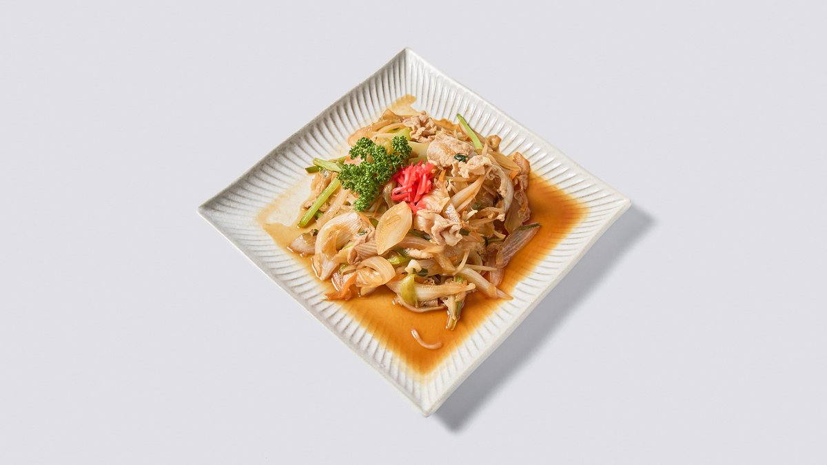 たっぷりの野菜とジューシーな肉を特製ソースで炒めた、ご飯にも合う一品です。