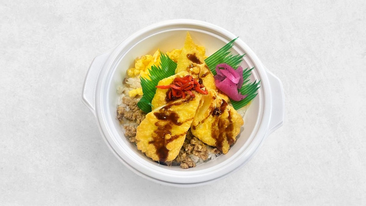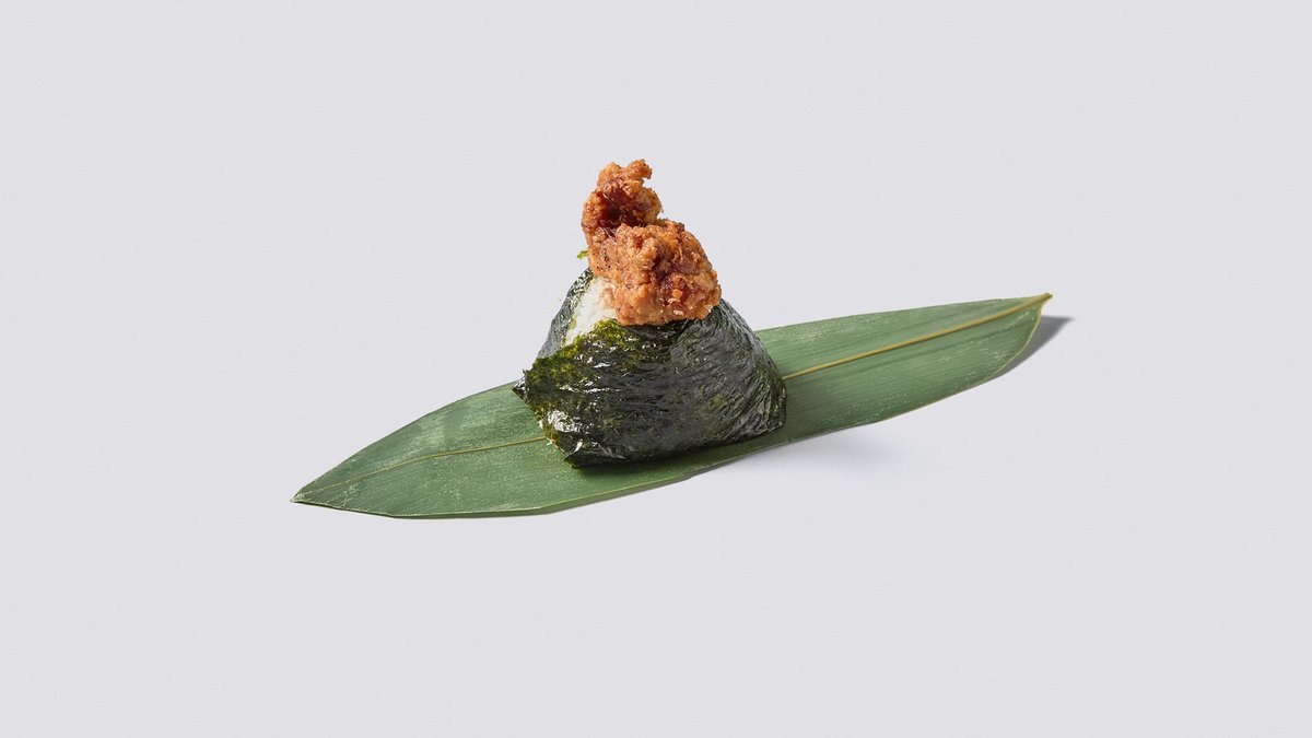シーチキンと特製ダレに漬け込み、カラッと揚げた、唐揚げをコラボレーションさせたお子様にも人気のジューシーなおにぎりです。