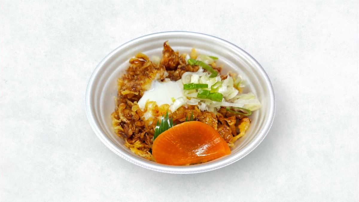 鶏肉の天ぷらを特製の甘辛いタレにくぐらせ、ご飯の上にのせました。ご飯がすすむ一品です。