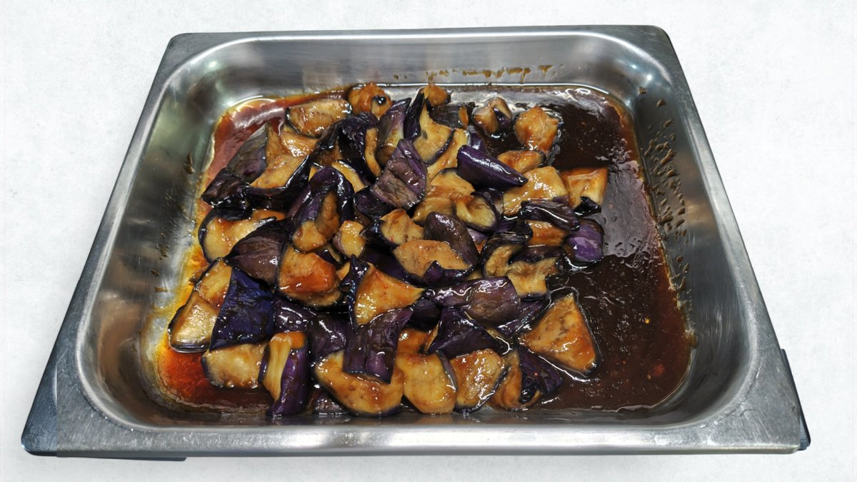 とろけるような食感のなすに、特製の甘辛いタレがよく染みた一品です。