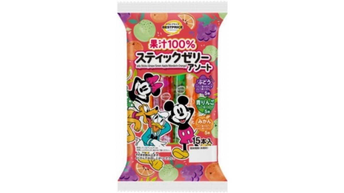 トップバリュ ベストプライス ディズニー 果汁100% スティックゼリーアソート 15本入