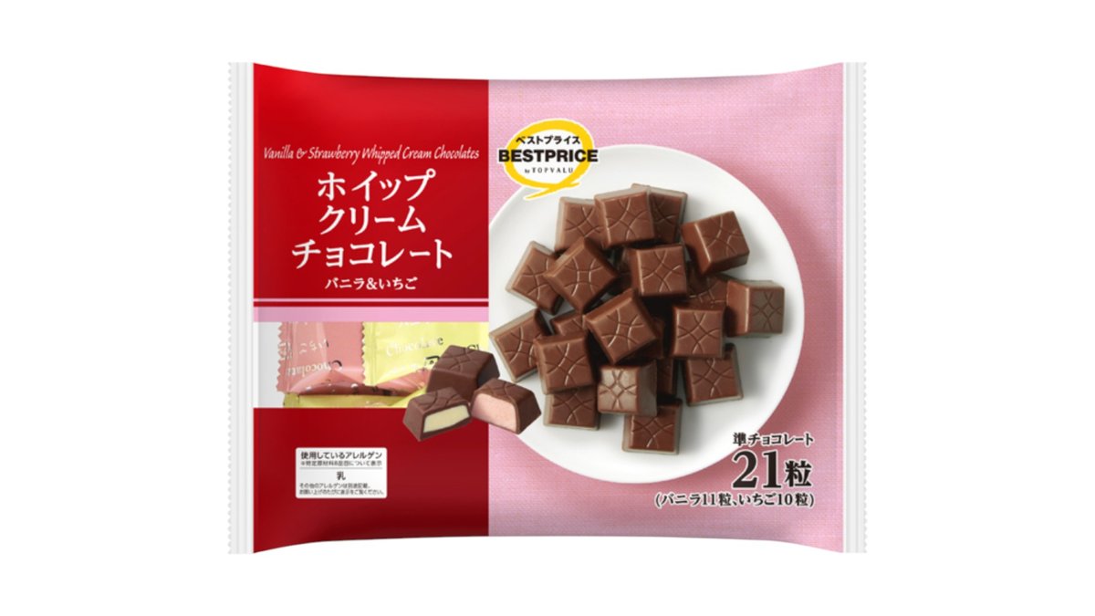 トップバリュ ベストプライス ホイップクリームチョコレート バニラ&いちご 21粒入