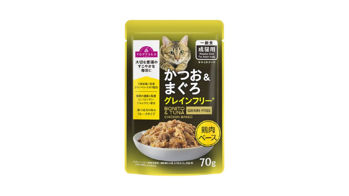 トップバリュ キャットフード かつお&まぐろ 鶏肉ベース 成猫用 70g
