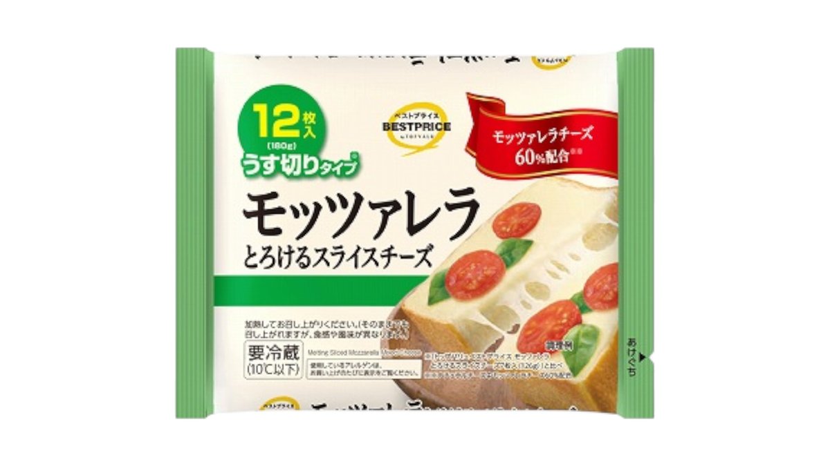 モッツァレラとろけるスライスチーズうす切りタイプ 180g(12枚入) トップバリュ ベストプライス Top Valu Best Price