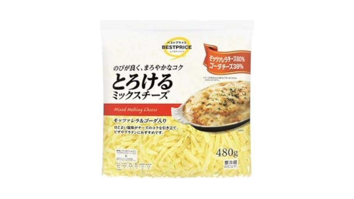 とろけるミックスチーズ(ゴーダ&モッツァレラ) 480g トップバリュ ベストプライス Top Valu Best Price