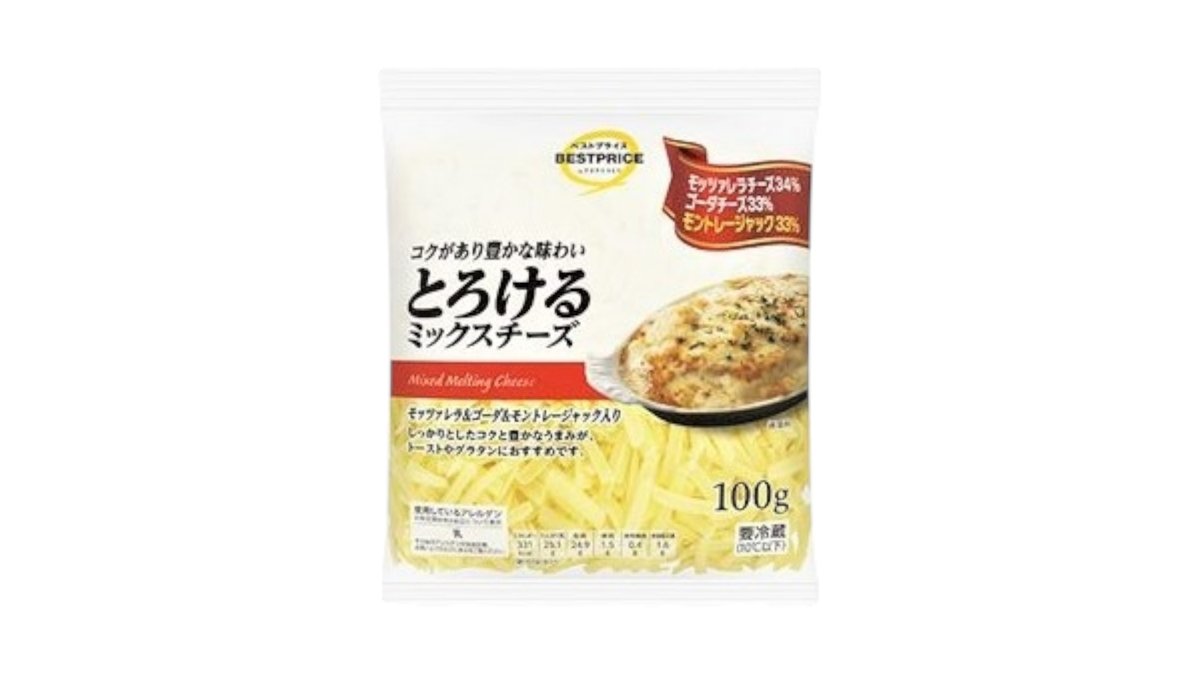 とろけるミックスチーズ (ゴーダ&モッツァレラなど3種類) 100g トップバリュ ベストプライス Top Valu Best Price