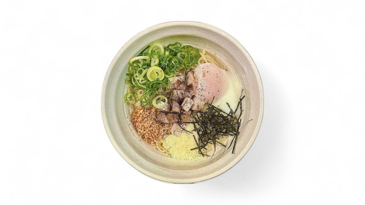 シャキシャキの刻み葱と魚粉・塩昆布を乗せた、さっぱりながらも濃厚な味わいの一杯です。