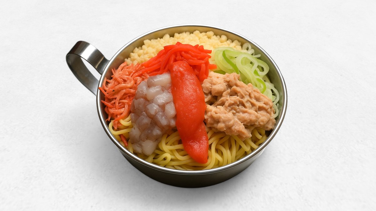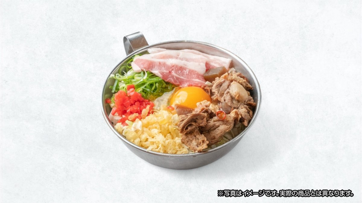 特製のたれに豚肉と麺が入ったボリューム満点な一品です。※天かす・干しエビ・紅ショウガが入っております。
