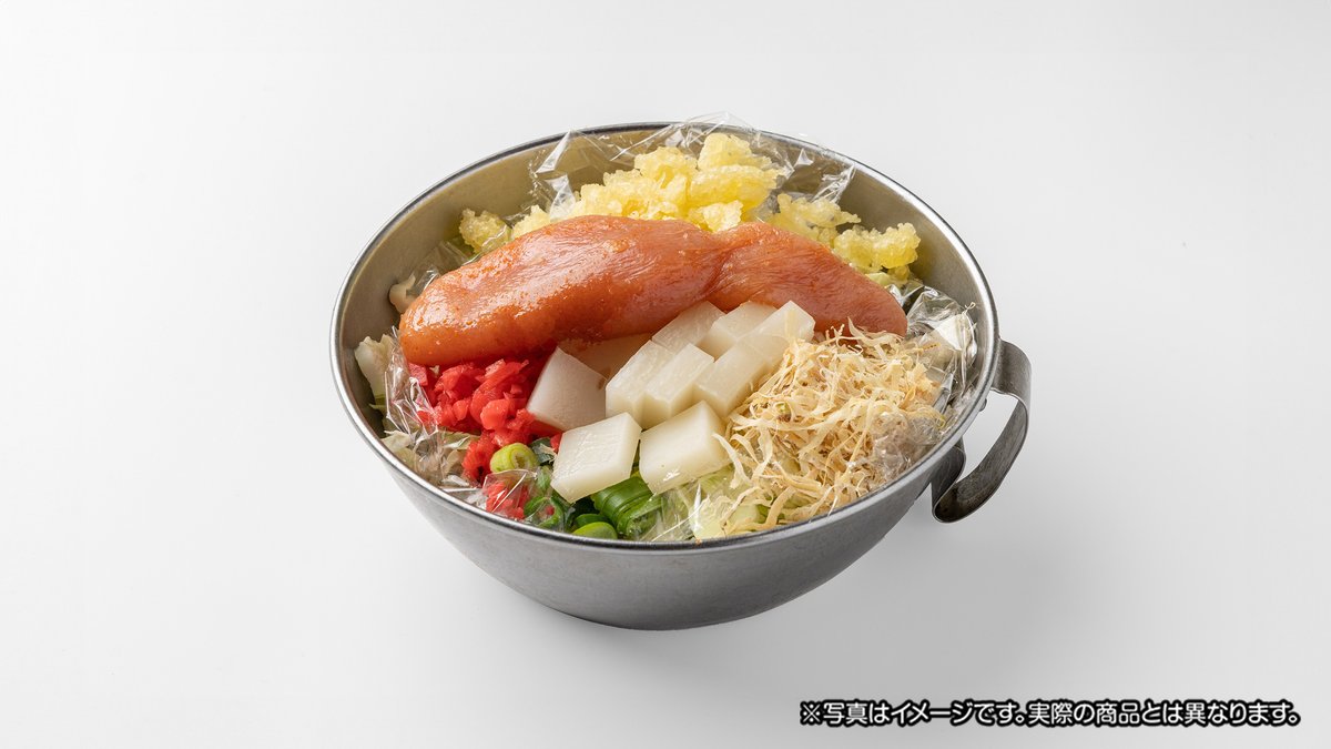 長ネギ・豚肉・めん・玉子が入ったボリューム満点で人気な一品です。※天かす・干しエビ・紅ショウガが入っております。