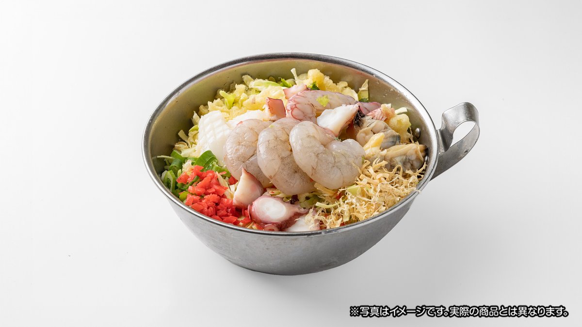 えび・あさり・いか・たこ・ほたての海鮮の旨味がたっぷり詰まった人気の一品です。※天かす・干しエビ・紅ショウガが入っております。