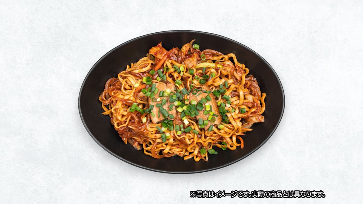 もちもちの麺と具材をピリッと辛いキムチと合わせました。