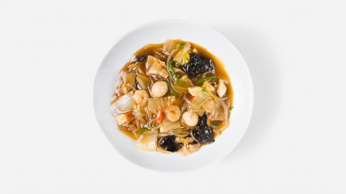 カリッと焼いた麺と、とろとろのあんかけのバランスが絶妙 麺に絡ませてお召し上がりください