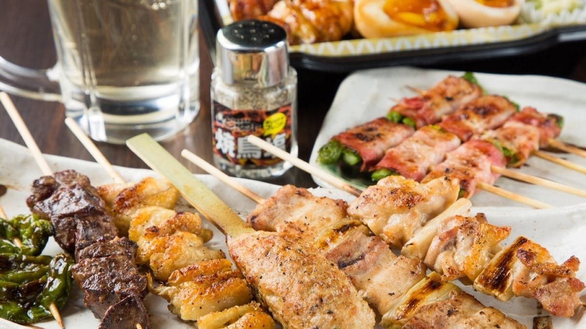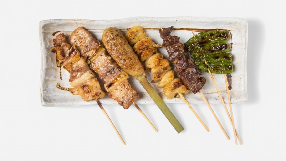 鶏/豚/つくねの他6本の盛り合わせです。 ※写真は一例です。
