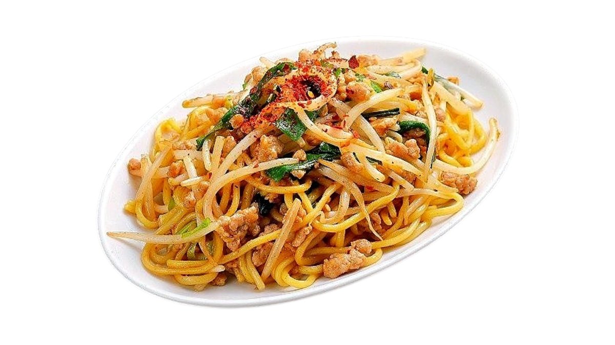 ジューシーな豚挽肉と、シャキシャキのもやし、ニラを使用し、特製スパイシーソースで味付けしました。ごま油の香りが食欲をそそり、もちもちの太麺と絡んで、最後まで飽きない美味しさをお楽しみいただけます。