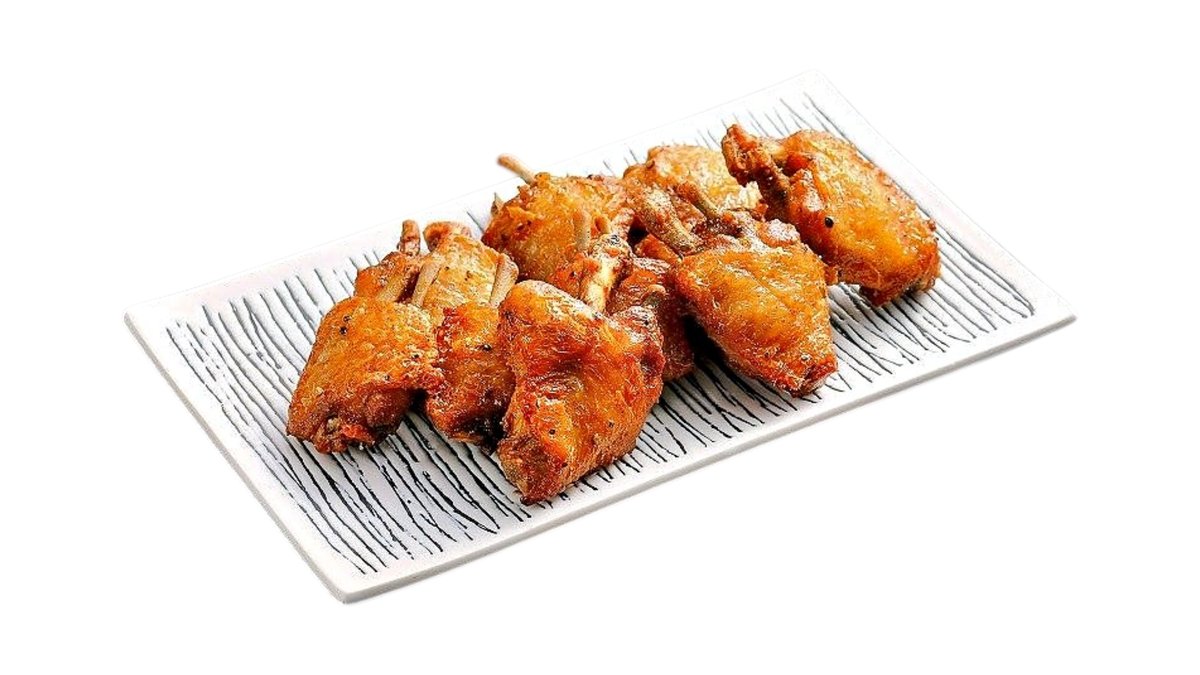 手羽先と比べて脂肪が少なくあっさりとした手羽元を特製のタレに漬け込みカリッと揚げました。※画像は8個入りです。
