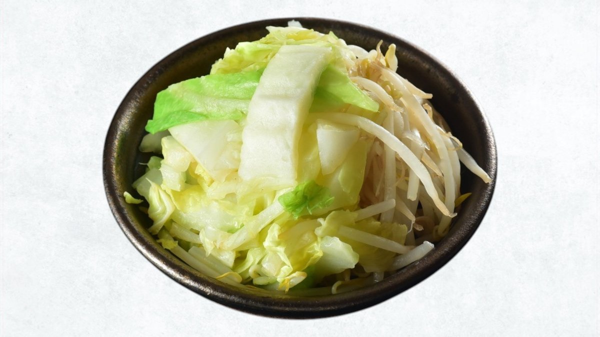 中麺、通常盛り1玉。たっぷり野菜の旨みと塩スープが調和した一杯です。