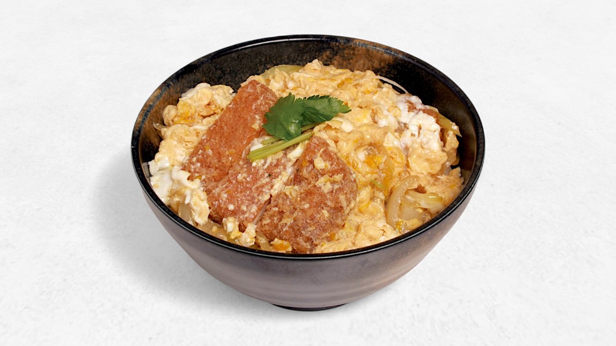 やわらかい豚ロースにこだわりました。ロース肉をふっくら玉子でとじこめました。