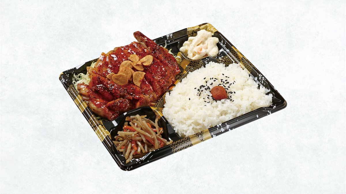 ジューシーな豚串を楽しめるボリューム弁当です。