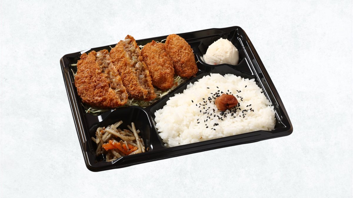 サクサクの衣をまとったカキフライと、ジューシーな和牛メンチカツを組み合わせた、贅沢なお弁当です。